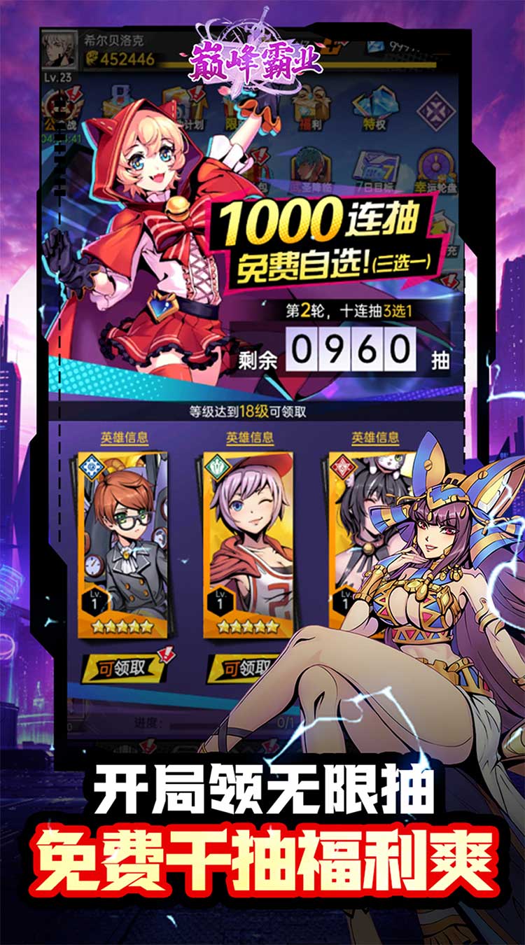 ★异次元卡牌手游,充值享0.05折优惠! ★新版本福利,登录免费送千抽! ★八日之约,天天登陆豪礼领不断! ★通章闯关,领超强五星英雄! ★每日签到、累计登录送海量钻石、五星英雄、大量召唤券.