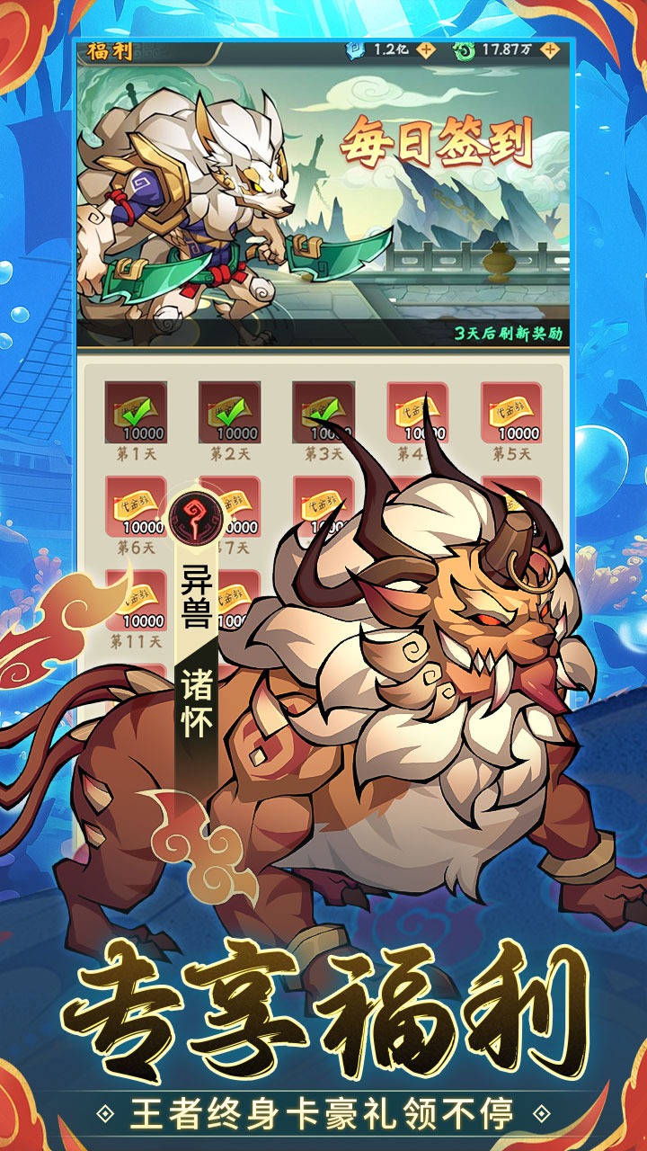 欢迎来到山海异兽世界,这是一款最还原真山海经的经典放置卡牌招募游戏,在游戏里所有的奇珍异宝、山海神兽玩家都可以通过招募来将他们收入囊中,并带着自己组建好的异兽去平定四海吧。