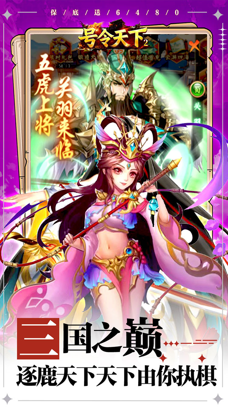 《号令天下》是一款全新三国题材策略卡牌手游,真实还原剧情,争霸天下,攻城掠阵,融入众多历史名城以及经典战役元素,超然万物的名将助您角逐三国之巅。0.05折的价格,升级即可领取代金券,更有海量福利,丰富活动,等主公您体验。畅享无双豪情~