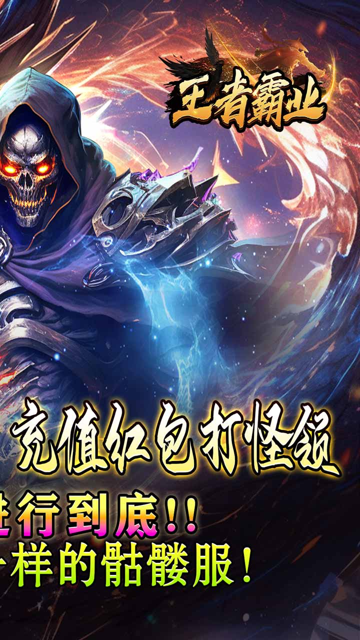 王者霸业(魔血骷髅超超变)全新骷髅超变风格传奇手游,独特炫酷骷髅系统,超高属性,炫酷外观,让你成为沙城最靓的仔!攻速移速上线拉满,极品剑甲爆不停,体验飞一般的感觉!上线送全屏拾取,自动回收,刀刀切割,刀刀绿毒!让你赢在起跑线!更有五行法阵刷怪免费升级,充值红包打怪免费领取!助你轻轻松松当大哥!适合散人的传奇版本!