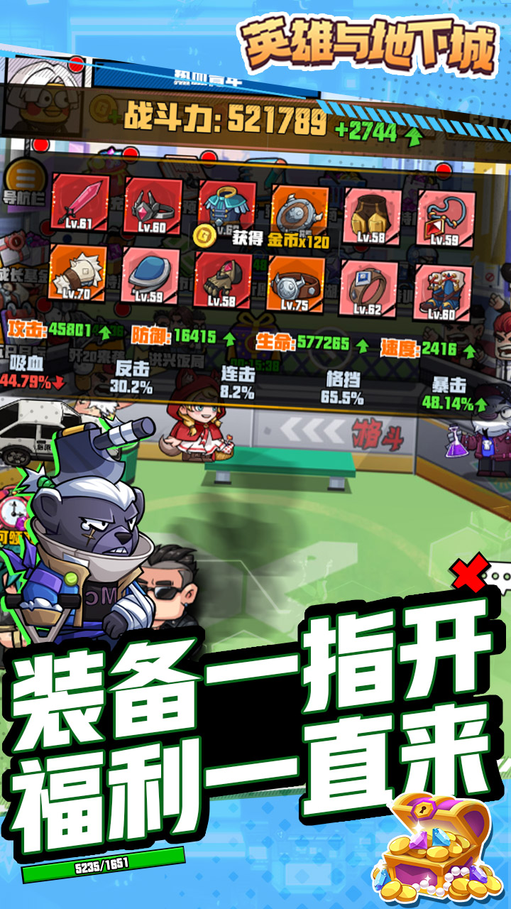 《英雄与地下城》是一款主打放置挂机玩法的开箱子游戏。游戏采用经典热血的画面打造,以开箱子为核心玩法,玩家只需要动动手指点一点箱子就能获得更新的装备、提升等级。此外,游戏还包含了竞技、伙伴和宝石等多样化的玩法。