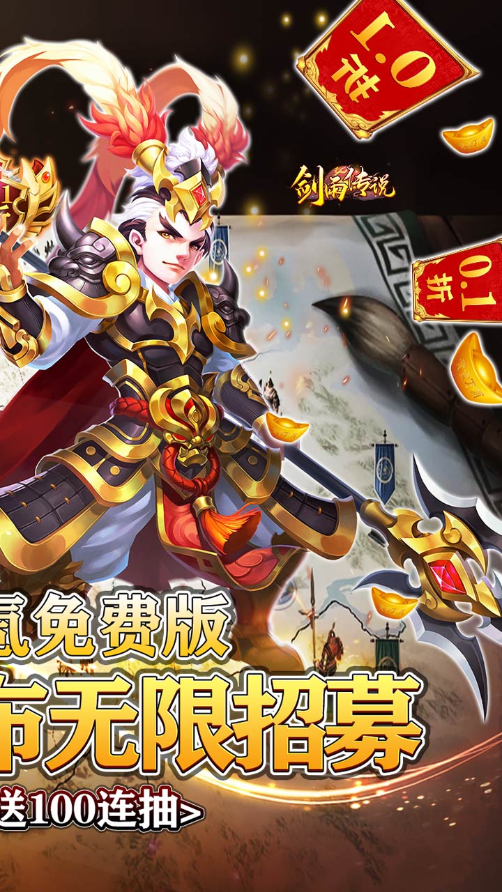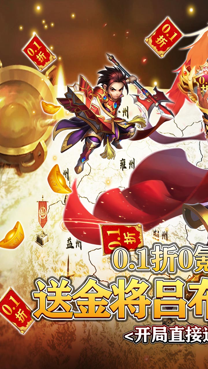 【独家特色】 1、0.1折0氪免费版! 2、开局直接送金将吕布嘎嘎乱杀! 3、七日签到再送紫金魔将关圣太子! 4、无限抽卡超强阵容随心搭!