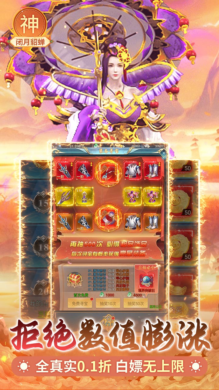1、全新0.1折免费版本,代金转盘上线送百抽,每日登录疯狂加送 2、上线直送万元代金券,即时战斗速通升仙 3、全新系统零氪开放,炫酷套装轻松获取,神装神宠极速养成,轻松挂机就能毕业 4、首充送百万仙玉,登录赠送大熊猫、7日连登再送SSR绝顶幻化
