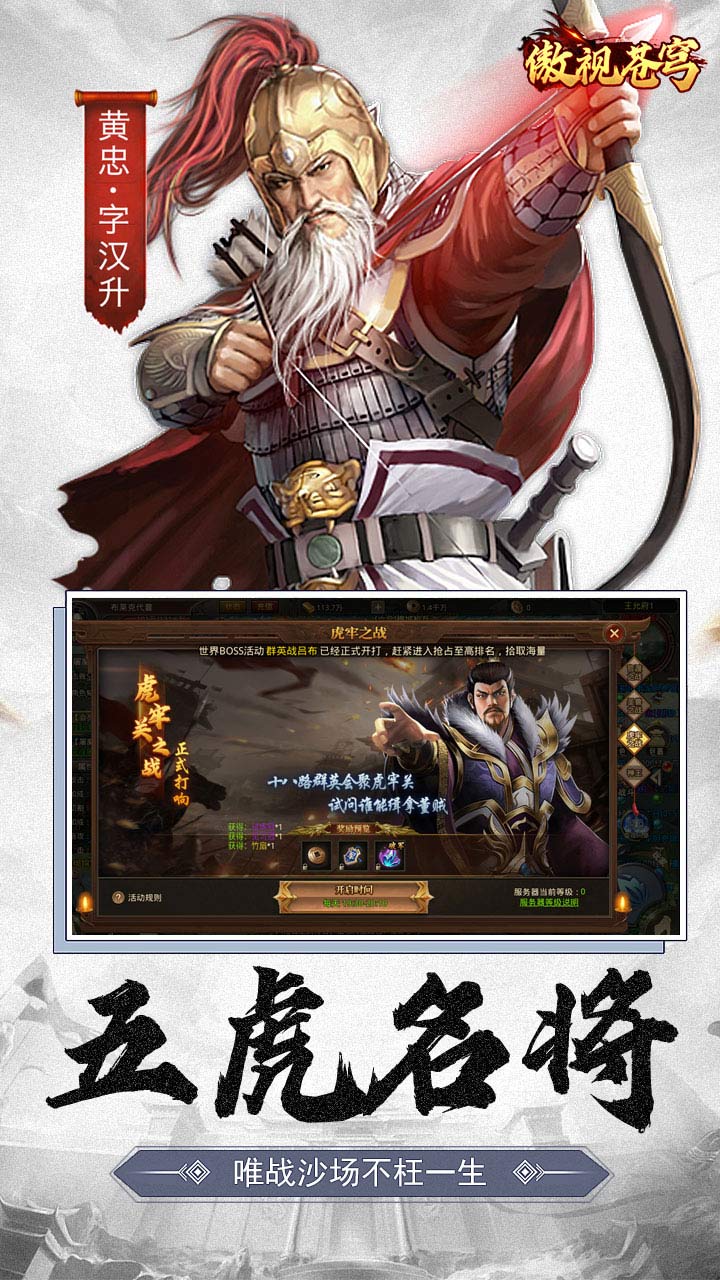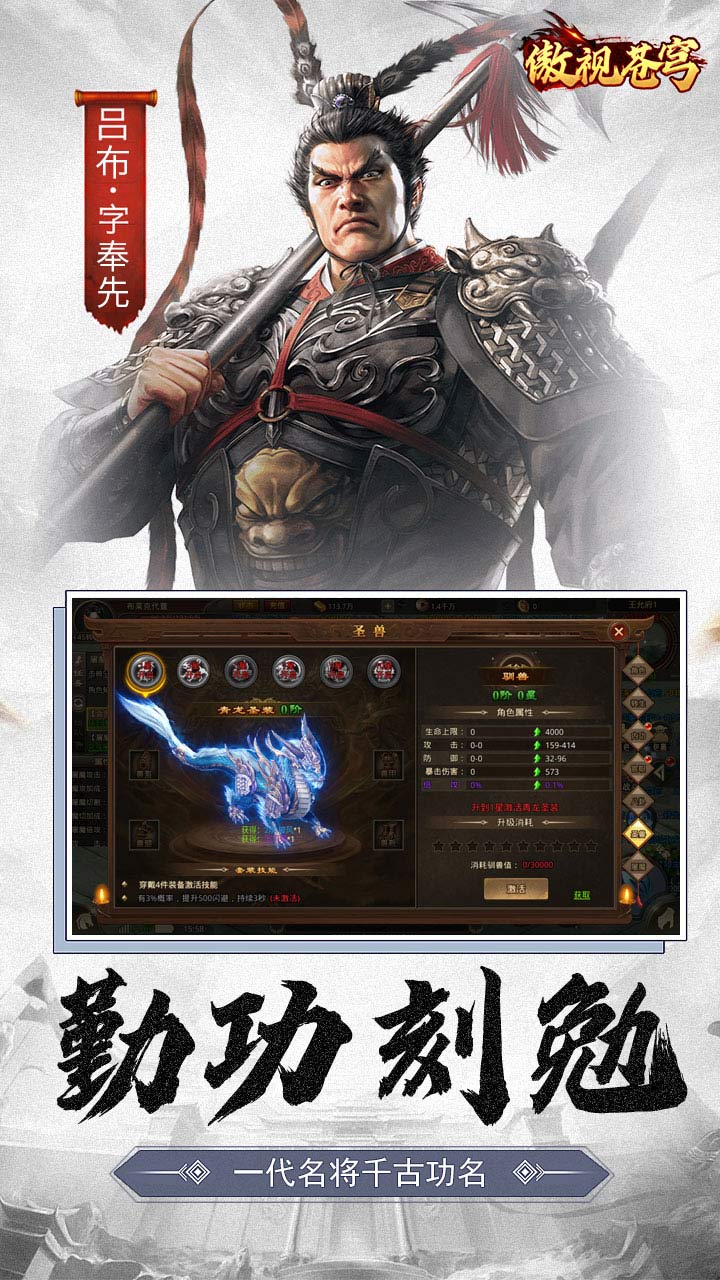 《傲视苍穹》是一款以三国历史为背景的大型多人在线角色扮演游戏。游戏通过丰富的剧情、细腻的玩法以及精美的画面,为玩家呈现了一个群雄争霸、战火四起的三国世界。同时,延续MMORPG游戏的经典设定,装备靠打,爆率拉满,必爆红包等特点,给您呈现不一样的三国游戏体验。