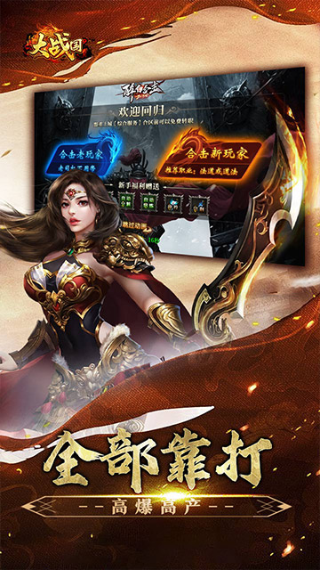 《大战国》是一款为玩家匠心定制的高端合击版本,装备、元宝、灵符高产高爆!新人上线根据任务快速提升,每个新区均有20W冲击豪礼真充货币!花时间也能顺利玩通关,赞助可嫖,组合合击适用各种不同场所!超多福利,生态大服,安全挂机24H开放,散人福利,免费会员,白嫖到底!