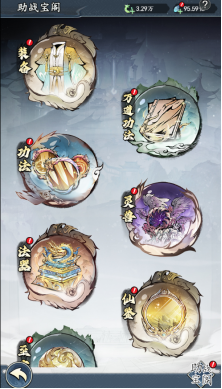 ★助战:大侠修炼怎么少得了强大的帮手,在助战里可以获得强大的功法、神兽、法器等帮助,帮大侠早日得道飞升,成就道祖霸业!