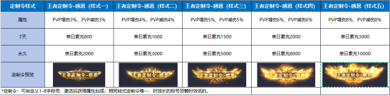 PS:定制令:玩家可自定义输入1-8字称号,激活后获得属性加成;相同样式定制令唯一,时效长的称号顶替时效低的。